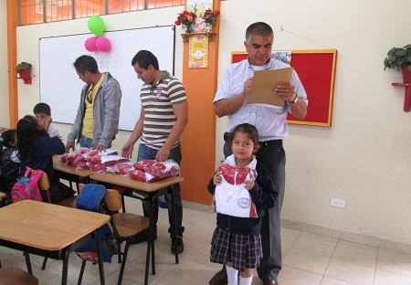 Por su parte, el magister Félix Benavides, rector de la Institución Educativa los Libertadores, se dio a la tarea de ir curso por curso para entregar personalmente las sudaderas, los beneficiados aseguraron que es un estímulo para poder seguir con sus estudios, puesto que es un apoyo que se hace más notorio cuando en un mismo hogar hay dos o más hijos estudiando.