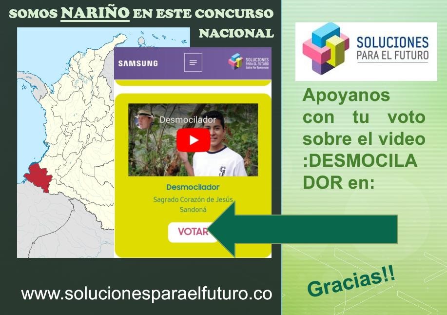 Ayudanos con tu voto apoyemos la Institución Educativa Sagrado Corazón de Jesús de Sandoná, para apoyar el proyecto "Desmocilador" en el siguiente Link: