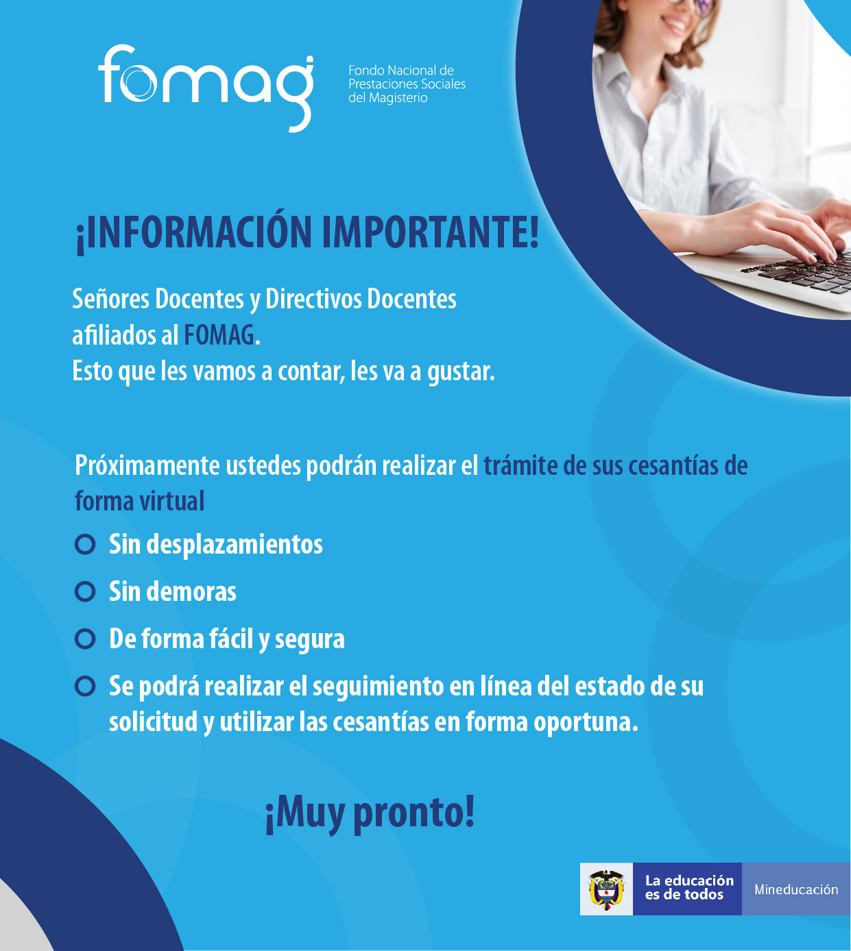 Dando inicio a la fase de implementación del nuevo módulo de prestaciones económicas cesantías y con el fin de llevar cabo un adecuado proceso de difusión de la nueva funcionalidad con los docentes para el trámite de sus cesantías, me permito enviar el link del FOMAG, donde reposa el siguiente material: