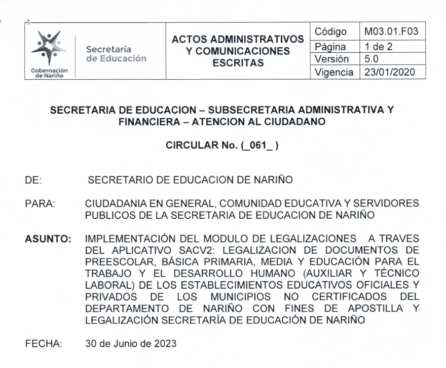 Ver: Circular 061 del 30 de junio de 2023 - Módulo de Legalizaciones