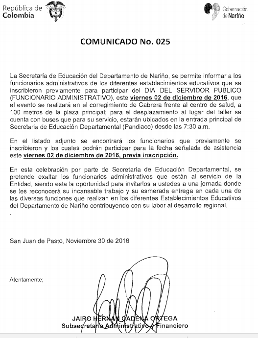 Descargue: COMUNICADO 25 Y LISTADO SERVIDOR PUBLICO 02 DIC 2016