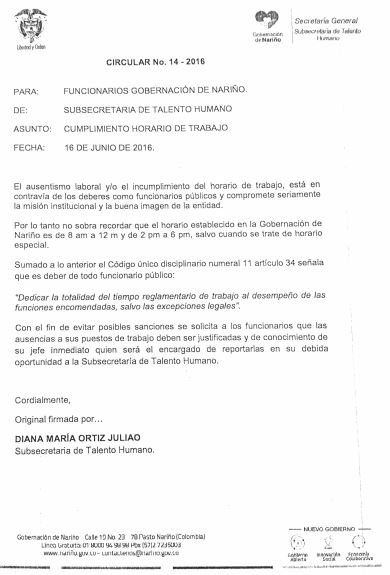 CIRCULAR 14 (Cumplimiento Horario de Trabajo)