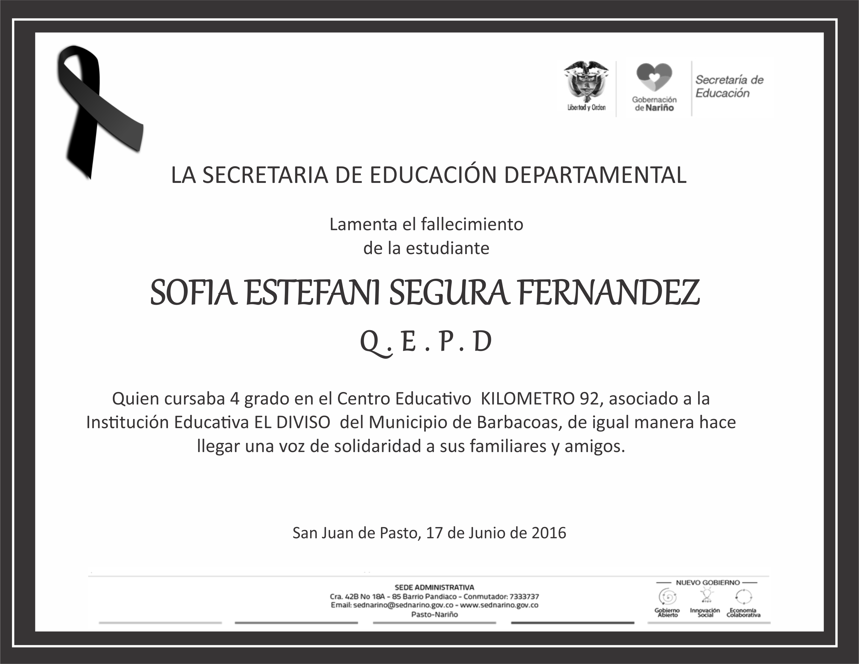 CONDOLENCIAS POR EL FALLECIMIENTO SEGURA FERNANDEZ