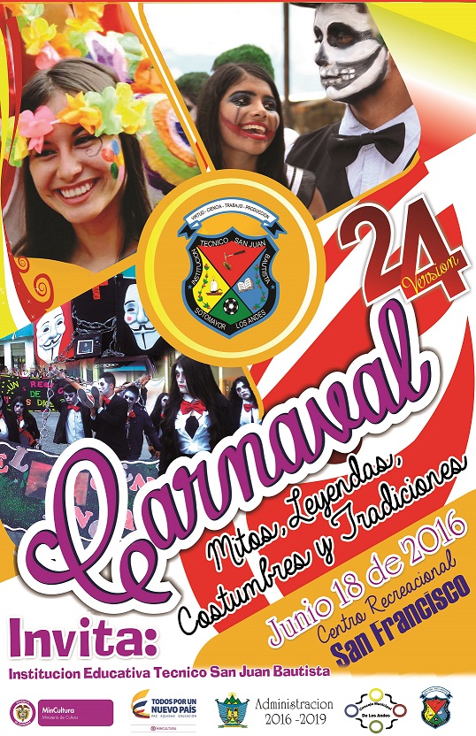 La comunidad educativa de la Institución Educativa Técnico San Juan Bautista, del municipio de Sotomayor, prepara los últimos detalles para realizar su tradicional Carnaval de Mitos, Leyendas, Costumbres y tradiciones en su vigésima cuarta versión.