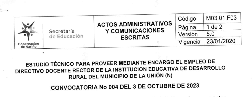 Estudio técnico - Convocatoria No. 004 del 03 de octubre de 2023