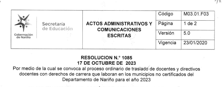 Ver: Resolución No.1085 del 17 de octubre de 2023