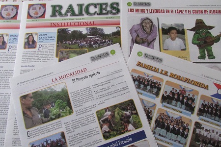 El periódico escolar Raíces es una experiencia pedagógica que pretende estimular las competencias comunicativas de los estudiantes, al igual que reforzar sus habilidades de lectura y escritura a través del periodismo.