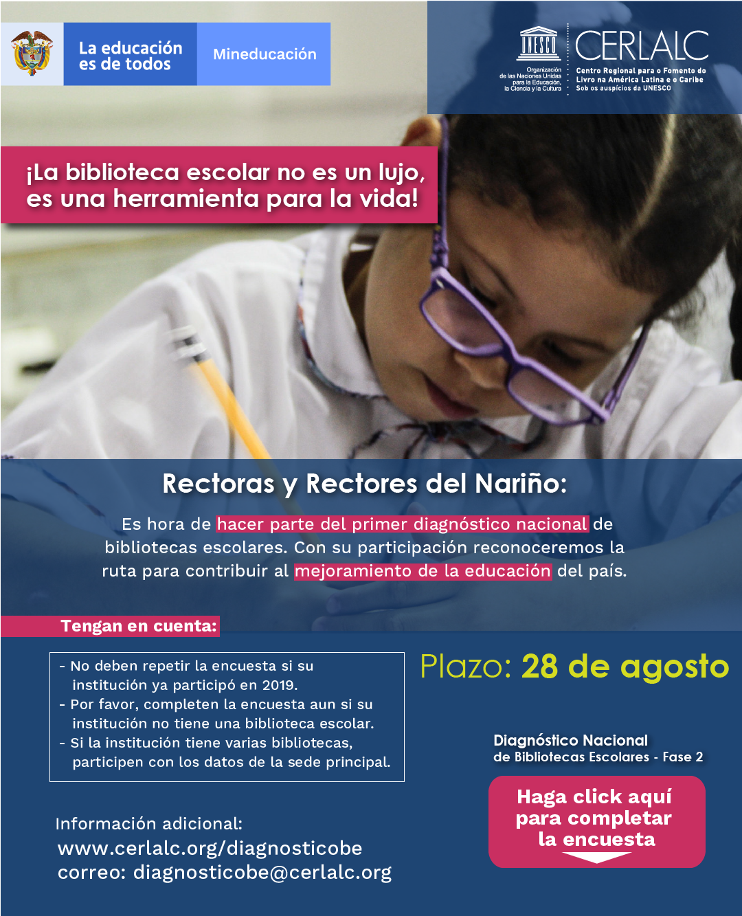 Para participar solo deben ingresar al siguiente link https://cerlalc.org/diagnosticobe/ hasta el próximo 28 de agosto.