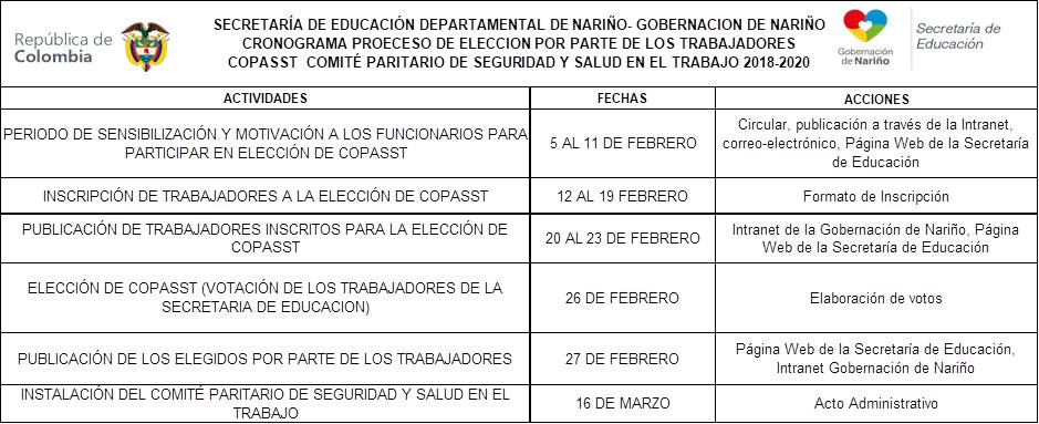 ELECCIONES DEL COPASST VIGENCIA 2018-2020