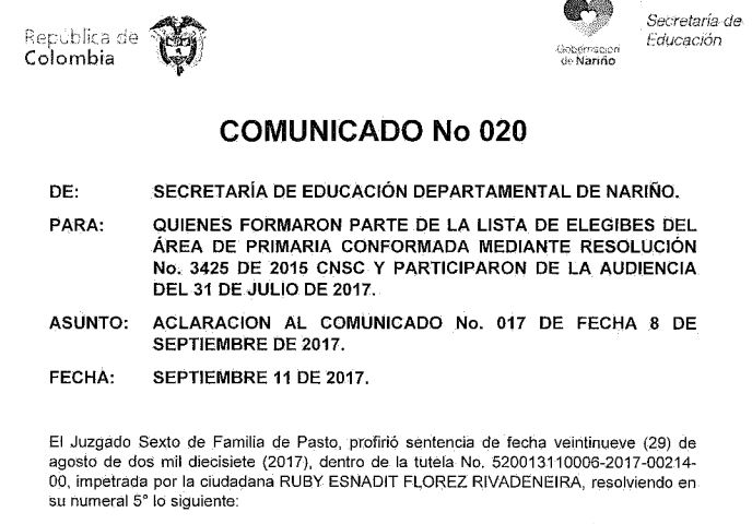 Descargue: COMUNICADO No. 020 - ACLARATORIO DEL COMUNICADO No. 017