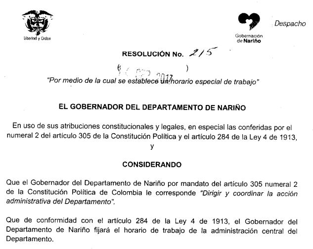 Descargue: RESOLUCION 215 HORARIO ESPECIAL 2017