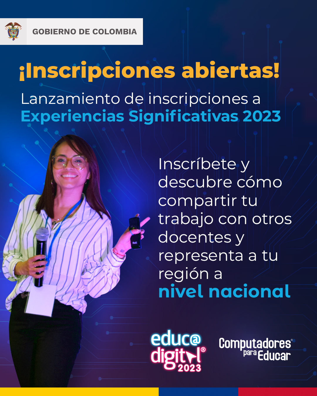 Bogotá D.C, 7 de marzo de 2023. Este martes, Computadores para Educar habilitó el formulario de inscripción de la convocatoria Experiencias Significativas 2023, proyectos que buscan promover la implementación de nuevas tecnologías y resaltar la labor de los docentes con sus iniciativas innovadoras en su aula de clase.