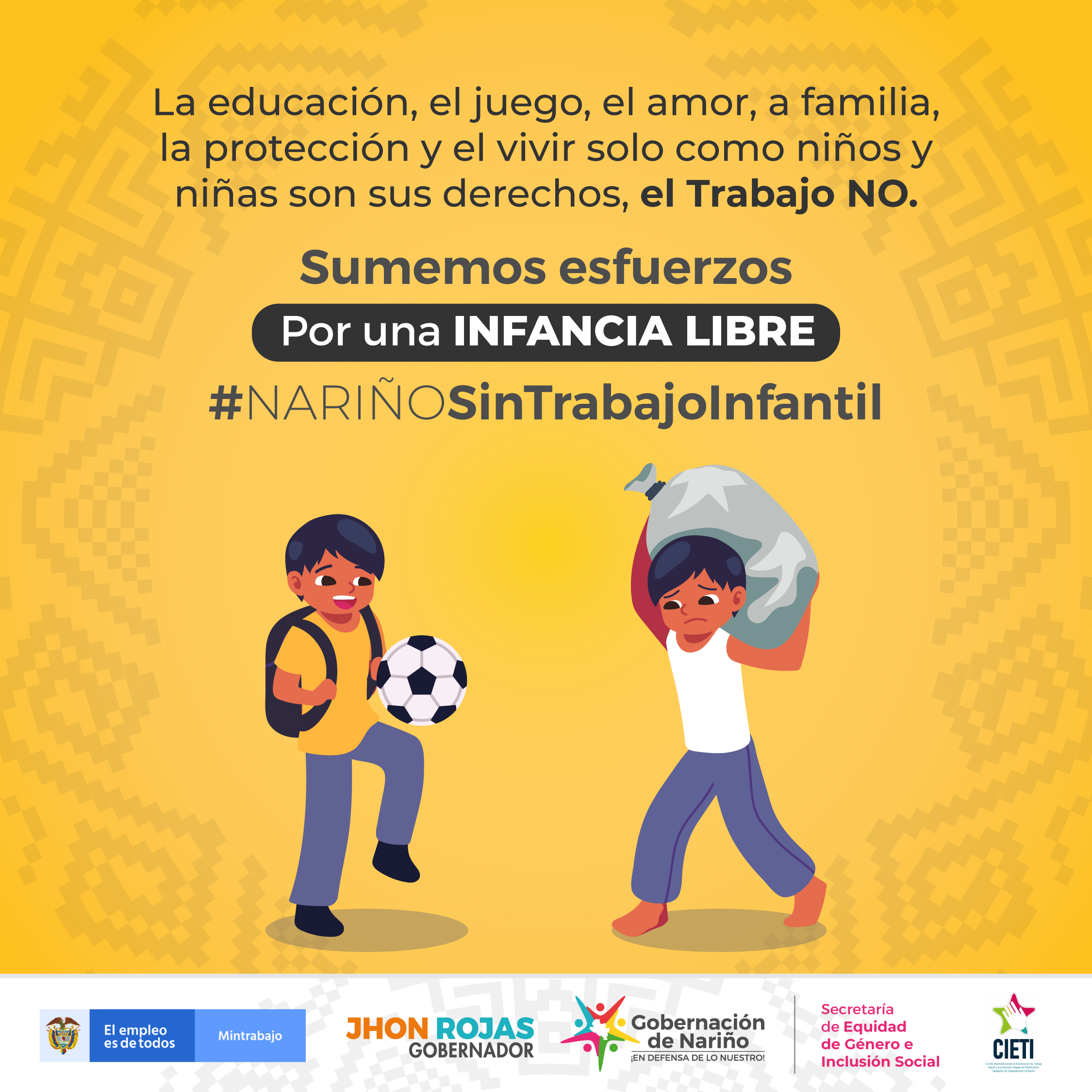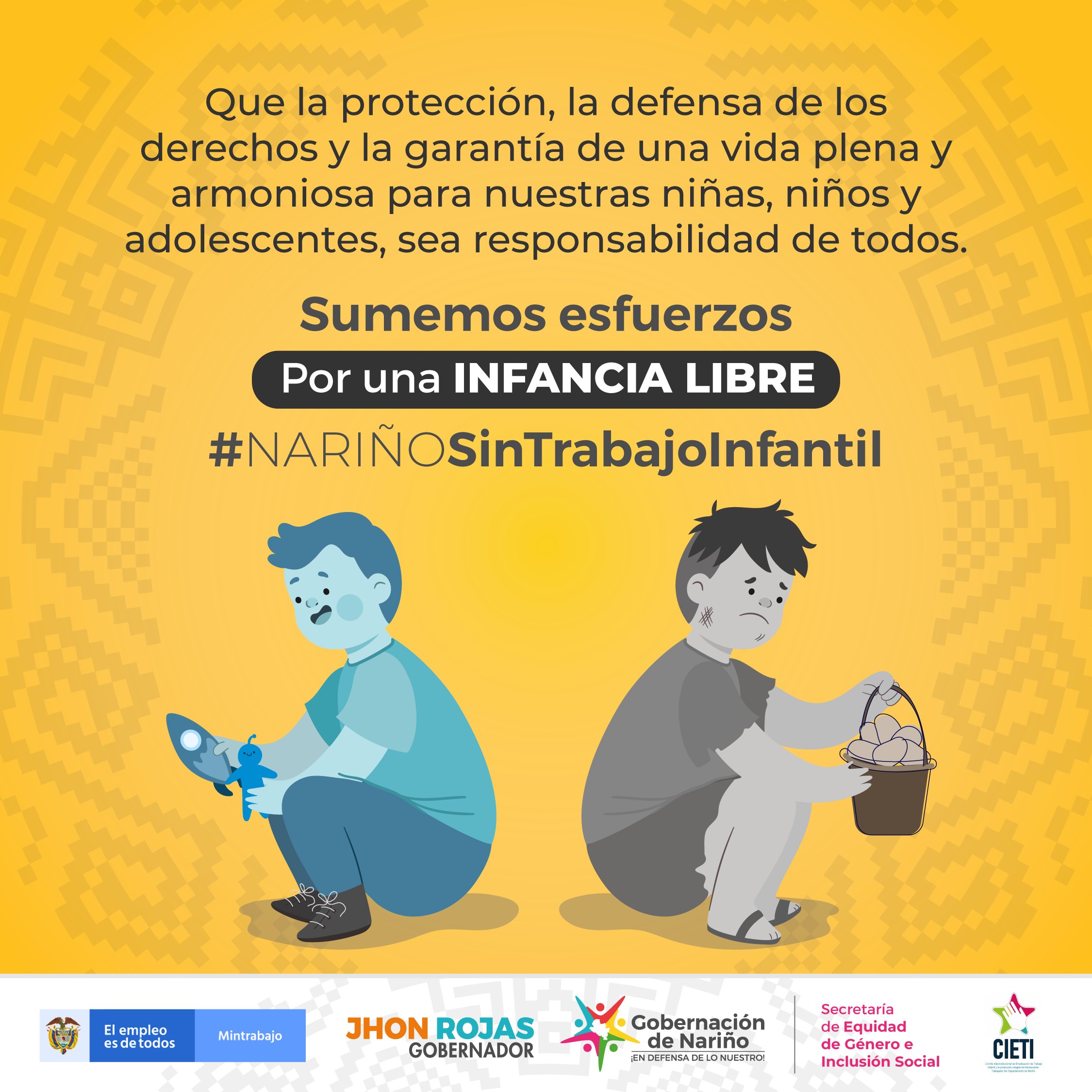 La Organización Internacional del Trabajo (OIT) lanzó el “Día mundial contra el trabajo infantil” en 2002, para concientizar acerca de la magnitud de este problema y aunar esfuerzos para erradicar esta realidad, siendo el día 12 de junio la conmemoración del día mundial contra el trabajo infantil, adicionalmente a ello, el Gobierno Colombiano suscribió el día 19 de abril de 2021 el Pacto Nacional de la prevención y erradicación del Trabajo Infantil y la Protección integral al Adolescente Trabajador, con el ánimo de redoblar esfuerzos en torno a la prevención y erradicación del trabajo infantil, que deberá abordar los desafíos planteados por el Covid -19 y acelerar el progreso hacia el objetivo de la agenda 2030 establecido por la meta 8.7 de los Objetivos de Desarrollo Sostenible (ODS) de poner fin al trabajo infantil en todas sus formas para el año 2025.