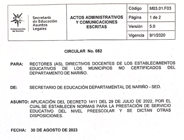 Ver: Circular No. 082 del 30 de agosto de 2023