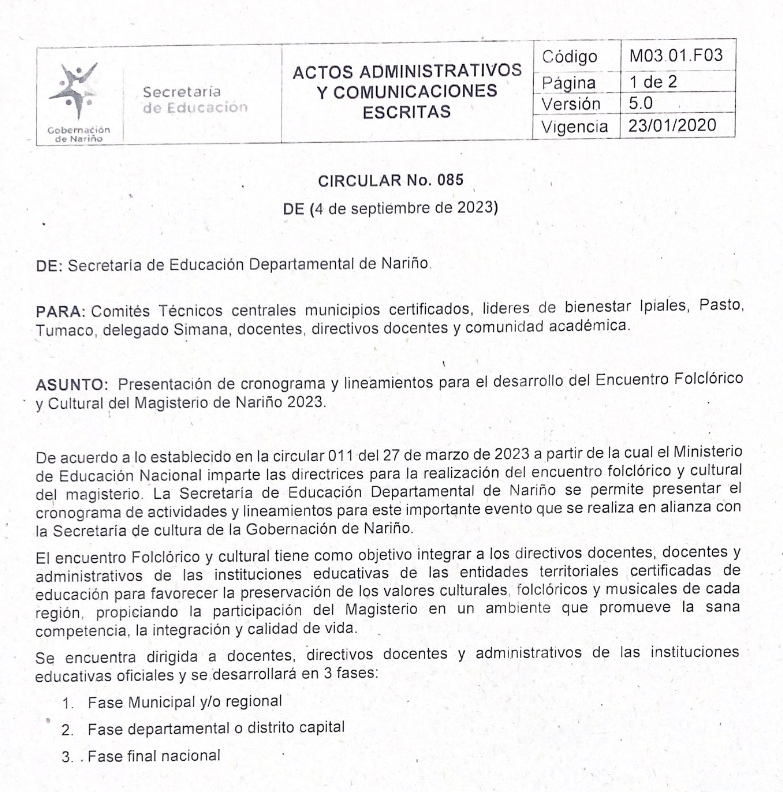 Ver: Circular No. 085 del 04 de septiembre de 2023