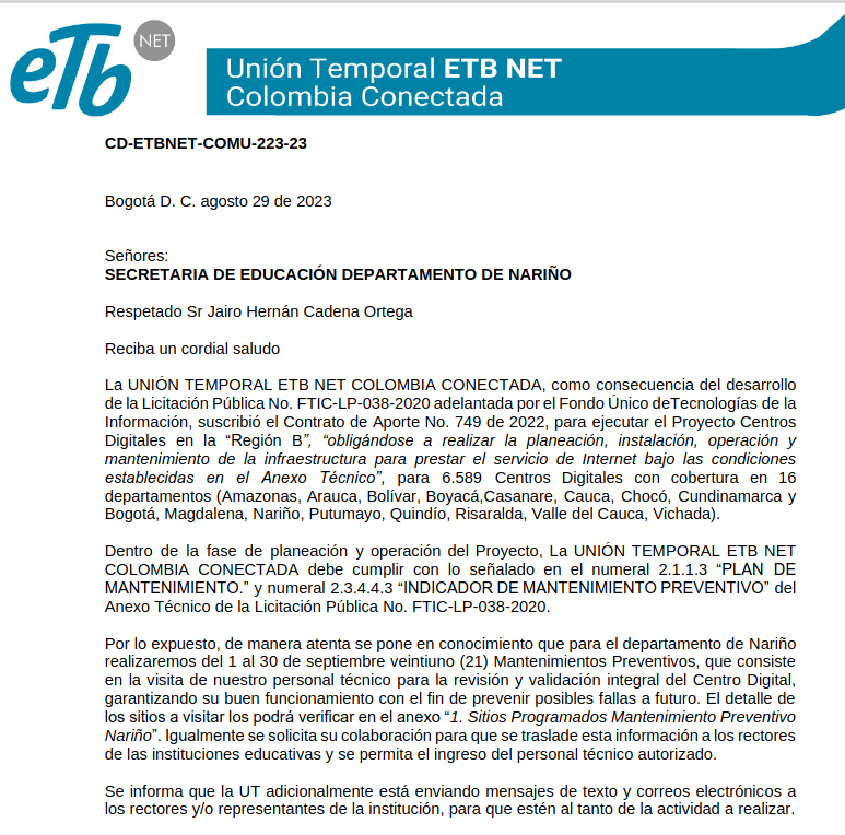 Invitación especial de MinTIC para Secretarios de Educación, rectores, docentes y estudiantes de las instituciones educativas del departamento de Nariño.