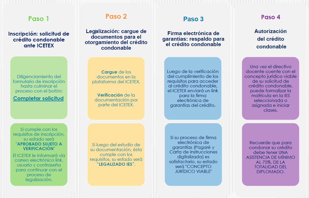 Con el fin de aportar a su desarrollo profesional, cualificar sus prácticas, fortalecer los procesos pedagógicos e institucionales y fomentar el desarrollo integral de los niños, niñas, adolecentes y jóvenes, se invita a los directivos docentes que no hayan participado en el diplomado de liderazgo del año anterior, a inscribirse hasta el 17 de junio de 2021, en uno de los cuatro programas de formación continua donde el Ministerio de Educación Nacional bajo la modalidad de crédito condonable financiará el 100% del valor de la matrícula del diplomado, de acuerdo con las condiciones requeridas por el Fondo de Formación Continua. (ver reglamento operativo).