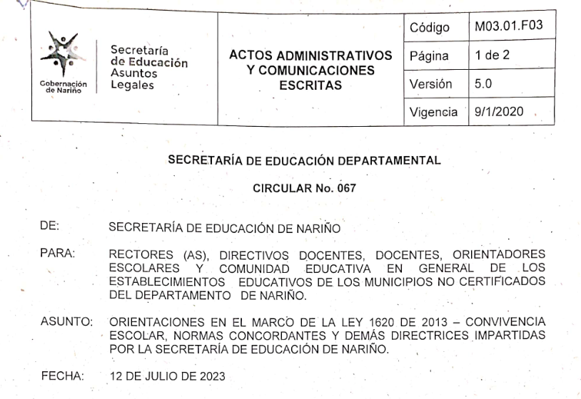Circular No. 067 del 12 de julio de 2023