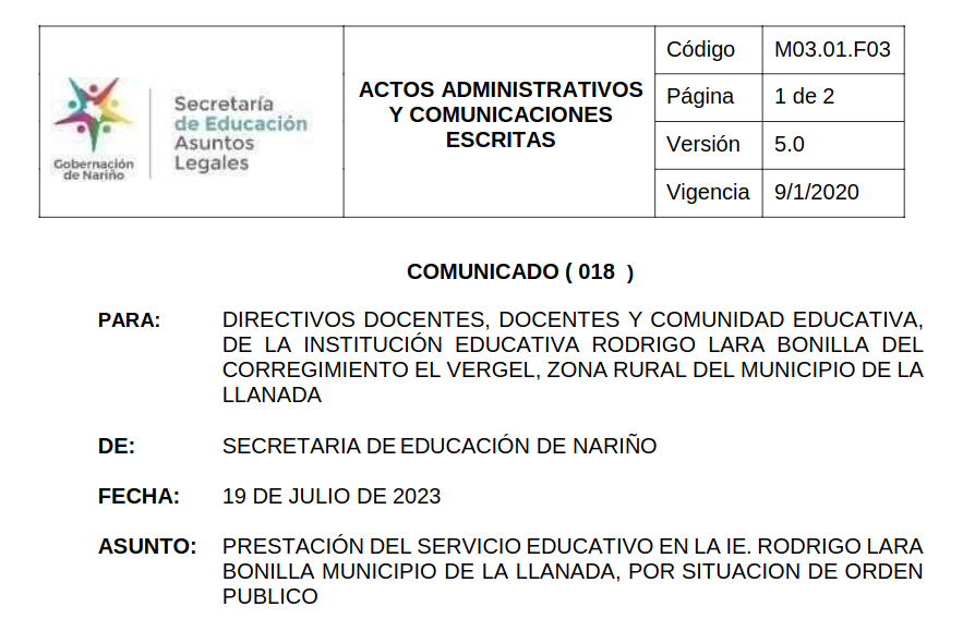 Comunicado No. 018