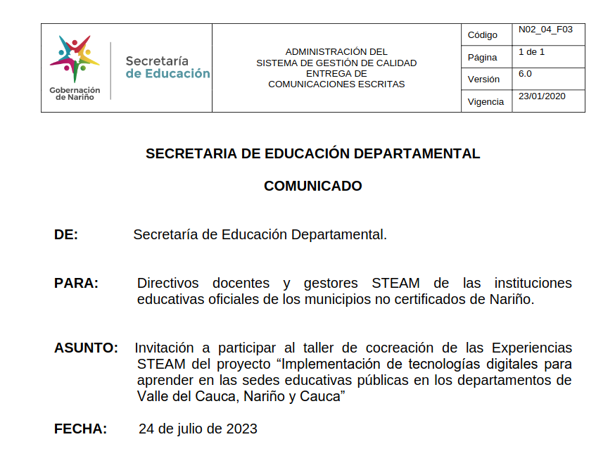 Comunicado - Invitación a participar al taller de taller de cocreación