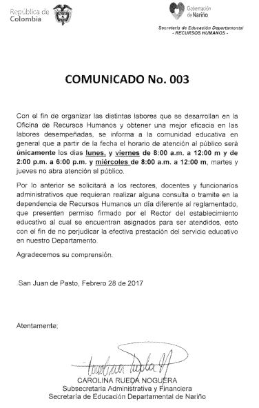 COMUNICADO 003 - RECURSOS HUMANOS