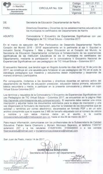 Descargue: Circular 024 - (Convocatoria Experiencias Significativas)