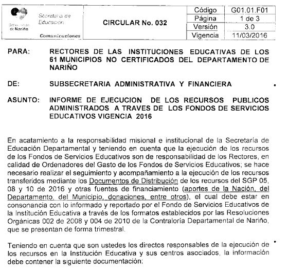 CIRCULAR 032 - (EJECUCION RECURSOS PUBLICOS)