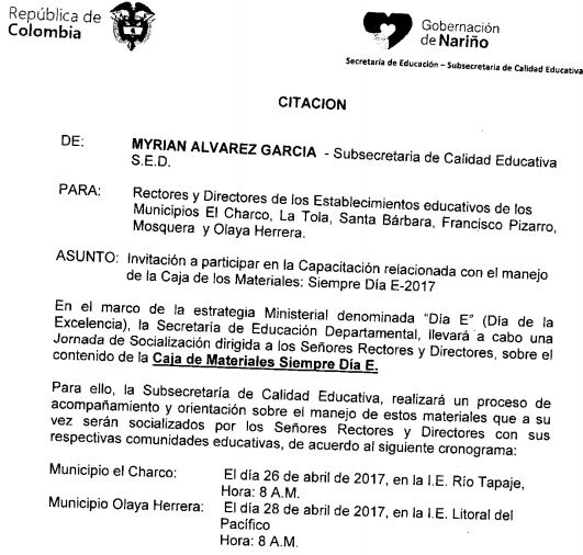 Descargue: Citación Reunión Siempre Dia E.