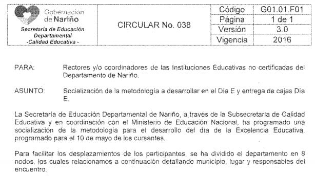 CIRCULAR 038 - (SOCIALIZACIÓN DIA E)