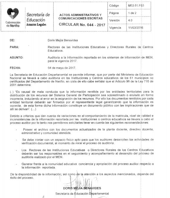 Descargue: Circular 044 - (Auditoria informacion reportada al MEN).