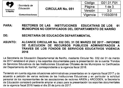 Descargue: Circular 051 - (Informe ejecucion de recursos).